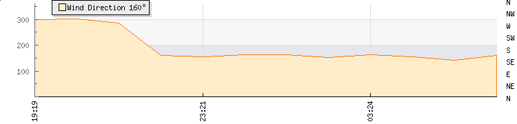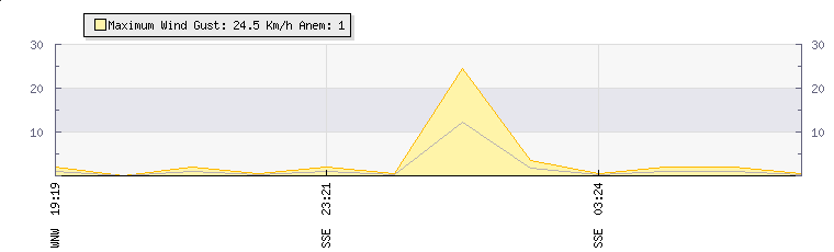 In the last few minutes the wind was South South East at an average speed of 1 kmh, reaching up to 2 kmh and a low of 0 kmh. The gust strength is2 kmh above the minimum speed |