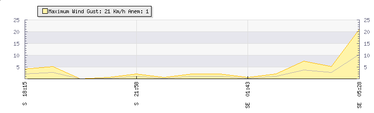 In the last few minutes the wind was East North East at an average speed of 4 kmh, reaching up to 8 kmh and a low of 0 kmh. The gust strength is8 kmh above the minimum speed |