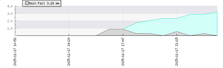 Rainfall Today:3.8mm12 hrs Rainfall:2.9mm24 hrs Rainfall:4.3mm