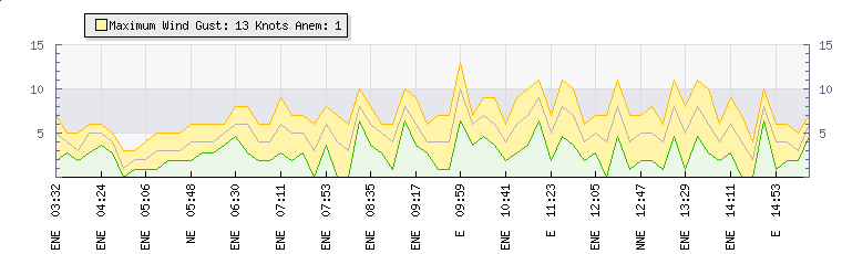 In the last few minutes the wind was East North East at an average speed of 8 knots, reaching up to 11 knots and a low of 5 knots. The gust strength is6 knots above the minimum speed |