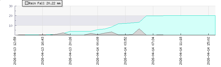 | Wind Gust: | 11 km/h | Min Temp: | 13.6 °C | Max Temp: | 15.6 °C | | Wind Average: | 7 km/h | Min Hum: | 100 % | Max Hum: | 100 % | |  |