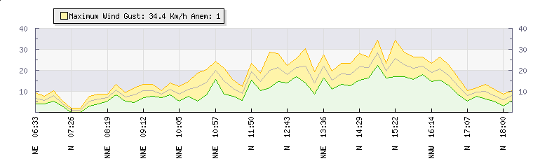Weather Summary: In the last few minutes the wind was Northerly at an average speed of 12 kmh, reaching up to 16 kmh and a low of 8 kmh. The gust strength is8 kmh above the minimum speed