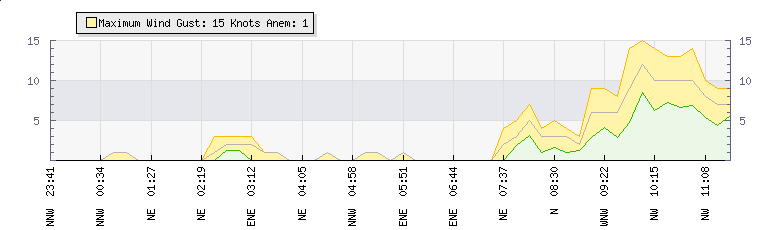 In the last few minutes the wind was Northerly at an average speed of 3 knots, reaching up to 5 knots and a low of 2 knots. The gust strength is3 knots above the minimum speed |