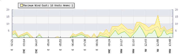 In the last few minutes the wind was North Westerly at an average speed of 6 knots, reaching up to 9 knots and a low of 3 knots. The gust strength is6 knots above the minimum speed |