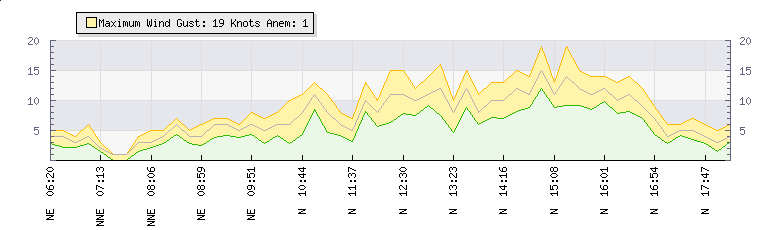 In the last few minutes the wind was Northerly at an average speed of 7 knots, reaching up to 9 knots and a low of 4 knots. The gust strength is5 knots above the minimum speed |