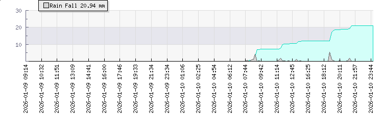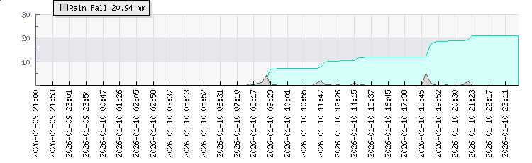 | Wind Gust: | 21 mph | Min Temp: | 21.5 °C | Max Temp: | 23.4 °C | | Wind Average: | 16 mph | Min Hum: | 86 % | Max Hum: | 95 % | |  |