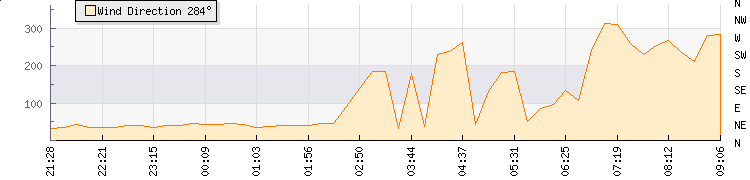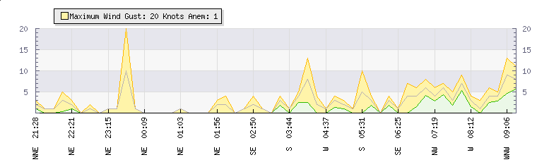 In the last few minutes the wind was Southerly at an average speed of 1 knots, reaching up to 1 knots and a low of 0 knots. The gust strength is1 knots above the minimum speed |