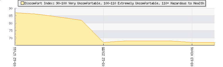 Wet Bulb:14.3°CDiscomfort:67Humidity:100%