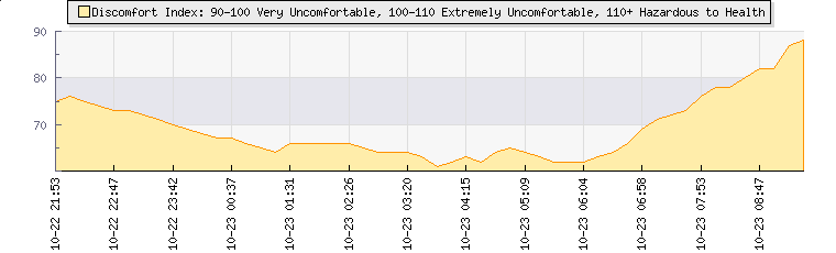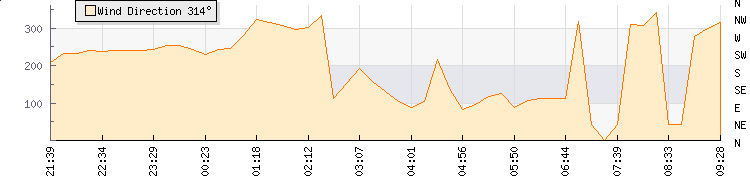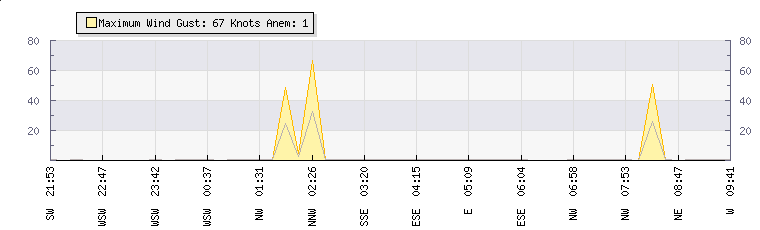 In the last few minutes the wind was South Easterly at an average speed of 1 knots, reaching up to 1 knots and a low of 0 knots. The gust strength is1 knots above the minimum speed |