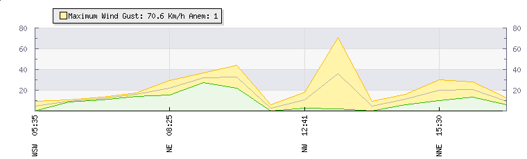 In the last few minutes the wind was Easterly at an average speed of 1 kmh, reaching up to 2 kmh and a low of 0 kmh. The gust strength is2 kmh above the minimum speed |