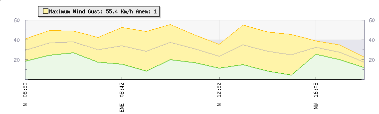 Weather Summary: In the last few minutes the wind was Westerly at an average speed of 27 kmh, reaching up to 35 kmh and a low of 20 kmh. The gust strength is15 kmh above the minimum speed