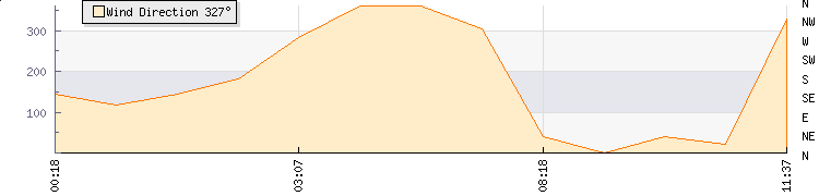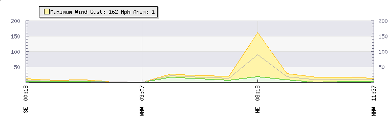 In the last few minutes the wind was West North West at an average speed of 13 mph, reaching up to 20 mph and a low of 7 mph. The gust strength is13 mph above the minimum speed |