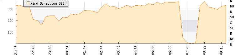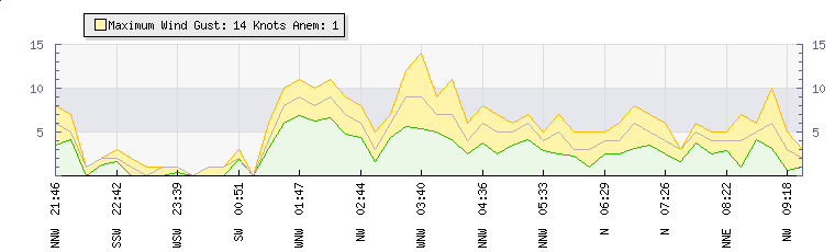In the last few minutes the wind was North North West at an average speed of 4 knots, reaching up to 5 knots and a low of 3 knots. The gust strength is2 knots above the minimum speed |