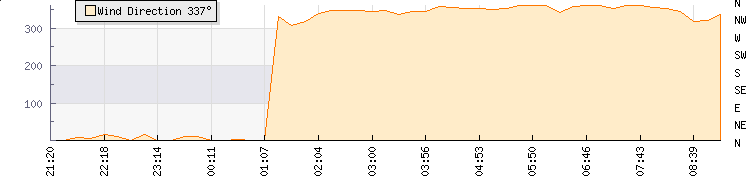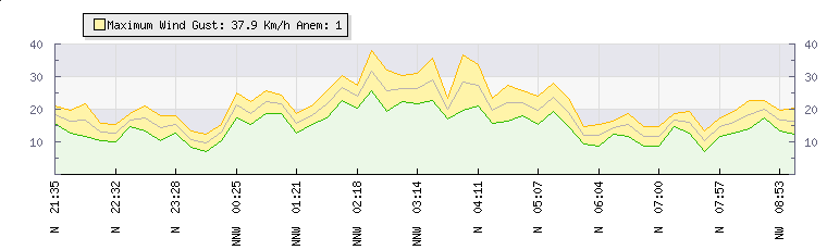 In the last few minutes the wind was Northerly at an average speed of 24 kmh, reaching up to 28 kmh and a low of 19 kmh. The gust strength is9 kmh above the minimum speed |
