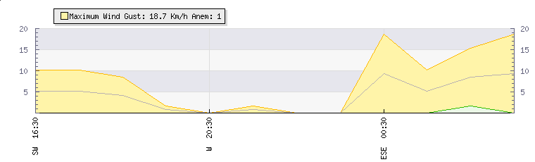 Weather Summary: In the last few minutes the wind was East North East at an average speed of 5 kmh, reaching up to 10 kmh and a low of 0 kmh. The gust strength is10 kmh above the minimum speed