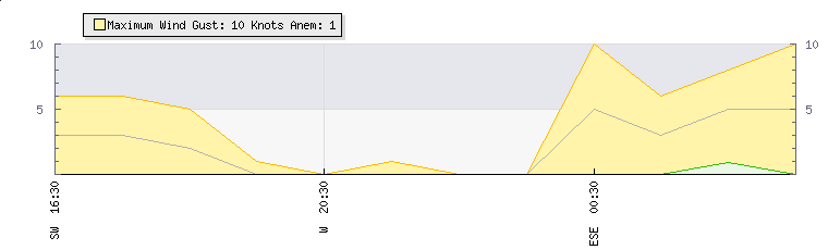 In the last few minutes the wind was East North East at an average speed of 3 knots, reaching up to 6 knots and a low of 0 knots. The gust strength is6 knots above the minimum speed |