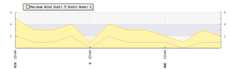In the last few minutes the wind was North North East at an average speed of 1 knots, reaching up to 1 knots and a low of 0 knots. The gust strength is1 knots above the minimum speed |