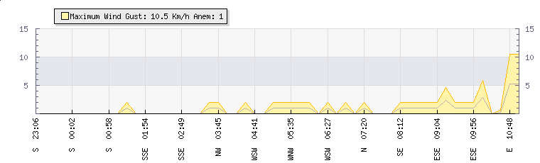Weather Summary: In the last few minutes the wind was East South East at an average speed of 2 kmh, reaching up to 5 kmh and a low of 0 kmh. The gust strength is5 kmh above the minimum speed