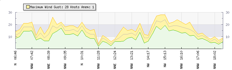 In the last few minutes the wind was Northerly at an average speed of 11 knots, reaching up to 13 knots and a low of 9 knots. The gust strength is4 knots above the minimum speed |