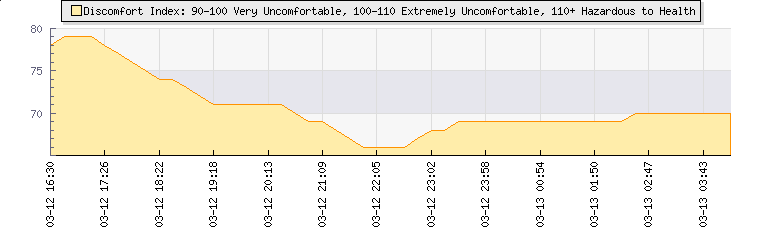 Wet Bulb:14.7°CDiscomfort:70Humidity:92%
