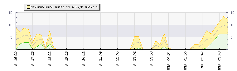 Weather Summary: In the last few minutes the wind was North North West at an average speed of 4 kmh, reaching up to 6 kmh and a low of 2 kmh. The gust strength is4 kmh above the minimum speed