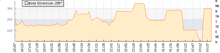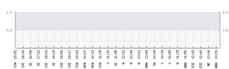 In the last few minutes the wind was West North West at an average speed of 0 knots, reaching up to 0 knots and a low of 0 knots. The gust strength is0 knots above the minimum speed |