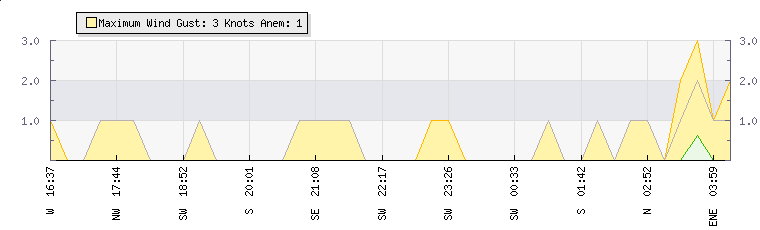 In the last few minutes the wind was Northerly at an average speed of 0 knots, reaching up to 0 knots and a low of 0 knots. The gust strength is0 knots above the minimum speed |