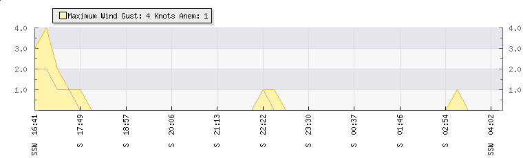 In the last few minutes the wind was Southerly at an average speed of 1 knots, reaching up to 1 knots and a low of 0 knots. The gust strength is1 knots above the minimum speed |