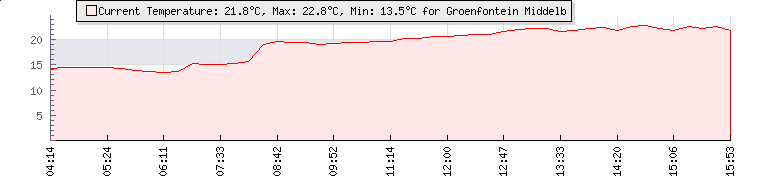 | GPS Co-ordinates: | S 25º 40' 21, E 29º 24' 24 | | ASL: | 4843 feet | | Sunrise / Sunset: | 06:17 / 17:49 | | Beaufort Scale: | Light Breeze |