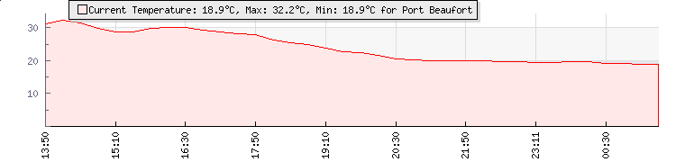 | GPS Co-ordinates: | S 34º 23' 46, E 20º 49' 42 | | ASL: | 108 feet | | Sunrise / Sunset: | 06:12 / 19:29 | | Beaufort Scale: | Light Air |