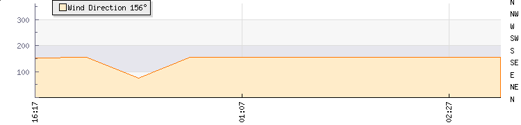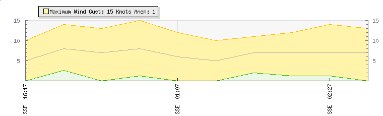 In the last few minutes the wind was South South East at an average speed of 8 knots, reaching up to 14 knots and a low of 3 knots. The gust strength is11 knots above the minimum speed |
