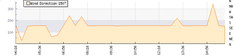 In the last few minutes the wind was South South East at an average speed of 6 mph, reaching up to 11 mph and a low of 0 mph. The gust strength is11 mph above the minimum speed |