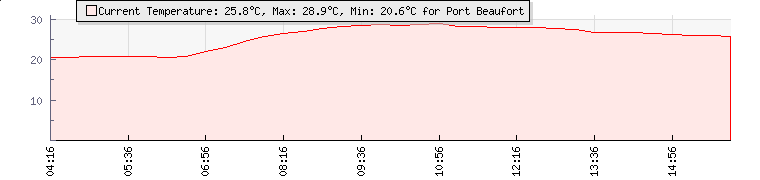 | GPS Co-ordinates: | S 34º 23' 46, E 20º 49' 42 | | ASL: | 108 feet | | Sunrise / Sunset: | 05:27 / 19:52 | | Beaufort Scale: | Light Breeze |