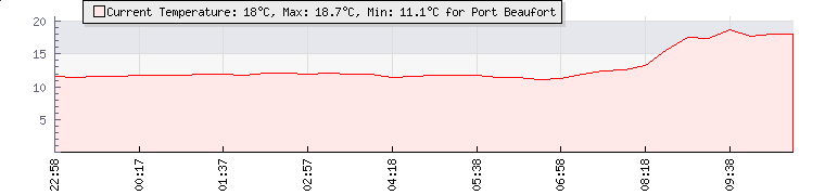 | GPS Co-ordinates: | S 34º 23' 46, E 20º 49' 42 | | ASL: | 108 feet | | Sunrise / Sunset: | 07:01 / 18:11 | | Beaufort Scale: | Light Air |