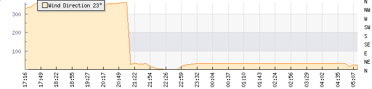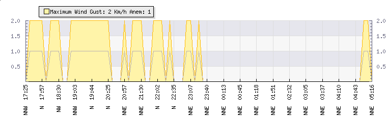In the last few minutes the wind was North North West at an average speed of 0 kmh, reaching up to 0 kmh and a low of 0 kmh. The gust strength is0 kmh above the minimum speed |