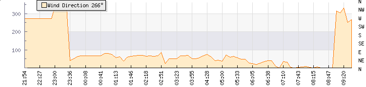 In the last few minutes the wind was Northerly at an average speed of 0 mph, reaching up to 0 mph and a low of 0 mph. The gust strength is0 mph above the minimum speed |