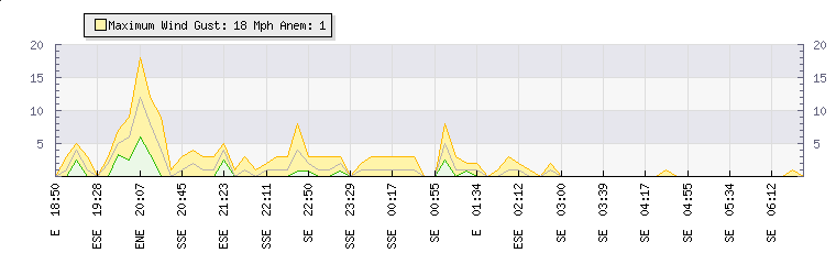 In the last few minutes the wind was South Easterly at an average speed of 0 mph, reaching up to 0 mph and a low of 0 mph. The gust strength is0 mph above the minimum speed |