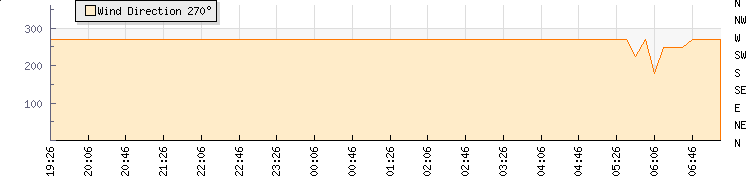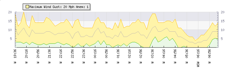 In the last few minutes the wind was Southerly at an average speed of 2 mph, reaching up to 4 mph and a low of 0 mph. The gust strength is4 mph above the minimum speed |