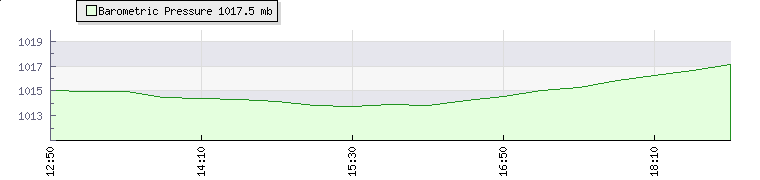 | Wind Speed: | 11|14|17 kmh | Wind Direction: | SW 218° | Temperature: | 25.2°C | | Rainfall Today: | 0mm | 12 hrs Rainfall: | 0mm | 24 hrs Rainfall: | 0mm | | Barometer: | 1015.5mb |