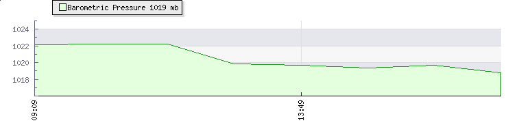 | Wind Speed: | 39|47|56 kmh | Wind Direction: | ESE 121° | Temperature: | 22.6°C | | Rainfall Today: | 0mm | 12 hrs Rainfall: | 0mm | 24 hrs Rainfall: | 0mm | | Barometer: | 1019mb |