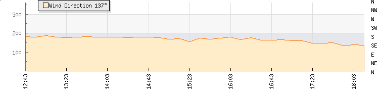Wind Speed: | 7|11|14 mph | Wind Direction: | SE 137° | Temperature: | 15.3°C | Rainfall Today: | 0mm | 12 hrs Rainfall: | 0mm | 24 hrs Rainfall: | 0mm | Barometer: | 1027.7mb |