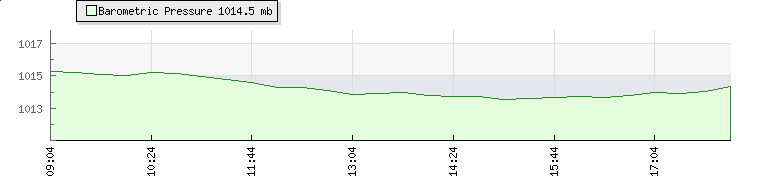 | Wind Speed: | 3|5|7 mph | Wind Direction: | SSW 206° | Temperature: | 22.8°C | | Rainfall Today: | 0mm | 12 hrs Rainfall: | 0mm | 24 hrs Rainfall: | 0mm | | Barometer: | 1014.5mb |