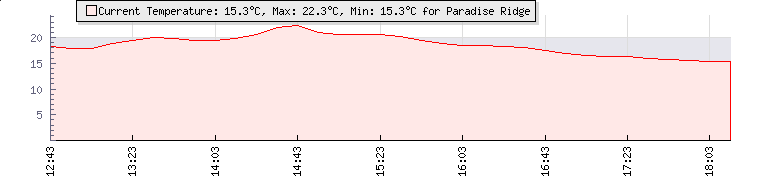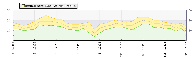 Wind Gust: | 25 mph | Min Temp: | 13.3 °C | Max Temp: | 22.3 °C | Wind Average: | 20 mph | | |  |