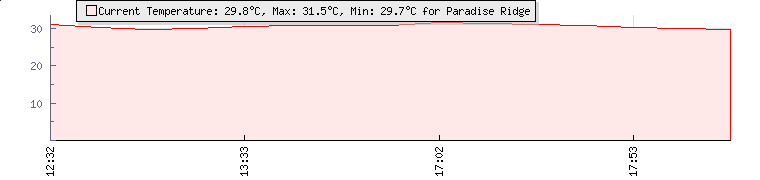| Wind Gust: | 11 mph | Min Temp: | 25.4 °C | Max Temp: | 31.8 °C | | Wind Average: | 10 mph | | |  |