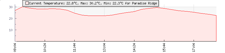 | Wind Gust: | 11 mph | Min Temp: | 18.3 °C | Max Temp: | 30.2 °C | | Wind Average: | 9 mph | | |  |