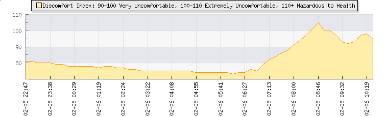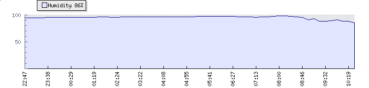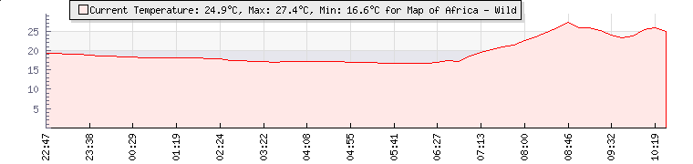 | Wind Gust: | 14 km/h | Min Temp: | 16.6 °C | Max Temp: | 27.4 °C | | Wind Average: | 8 km/h | Min Hum: | 91 % | Max Hum: | 98 % | |  |