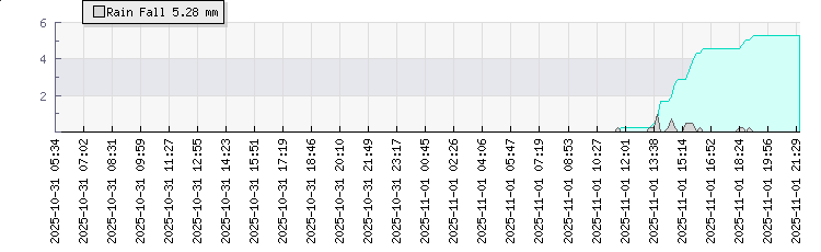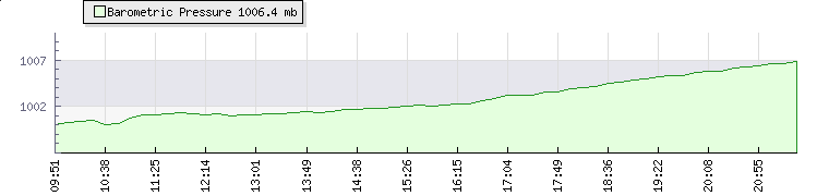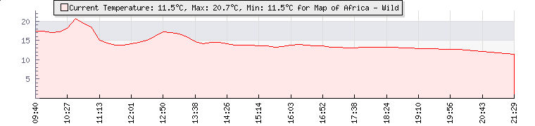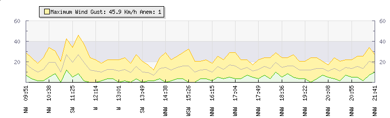 | Wind Gust: | 29 km/h | Min Temp: | 12.4 °C | Max Temp: | 16.7 °C | | Wind Average: | 16 km/h | Min Hum: | 70 % | Max Hum: | 83 % | |  |
