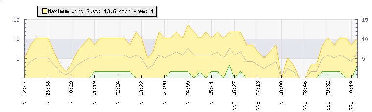 In the last few minutes the wind was Northerly at an average speed of 2 kmh, reaching up to 3 kmh and a low of 0 kmh. The gust strength is3 kmh above the minimum speed |