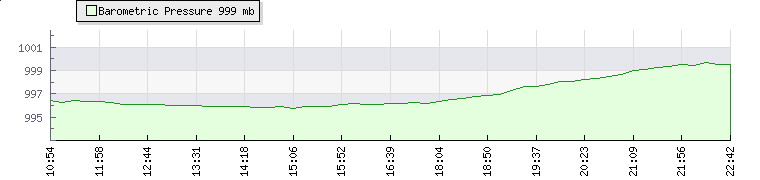 | Wind Speed: | 0|3|7 kmh | Wind Direction: | W 261° | Temperature: | 21.4°C | | Wet Bulb: | 20°C | Discomfort: | 86 | Humidity: | 89% | | Rainfall Today: | 0mm | 12 hrs Rainfall: | 0mm | 24 hrs Rainfall: | 0mm | | Barometer: | 998.6mb | Dew Point: | 19.5°C | Clouds AGL: | 757ft (231 m) | | Density-Alt: | 2152ft (656 m) | Fire Danger: | | Webcam: |  |