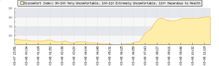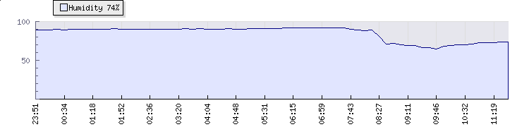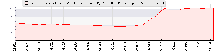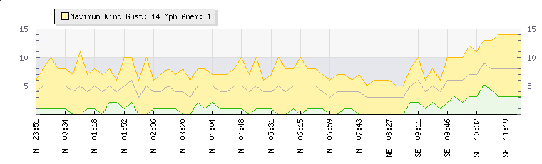 | Wind Gust: | 11 mph | Min Temp: | 8.9 °C | Max Temp: | 20.4 °C | | Wind Average: | 6 mph | Min Hum: | 65 % | Max Hum: | 92 % | |  |